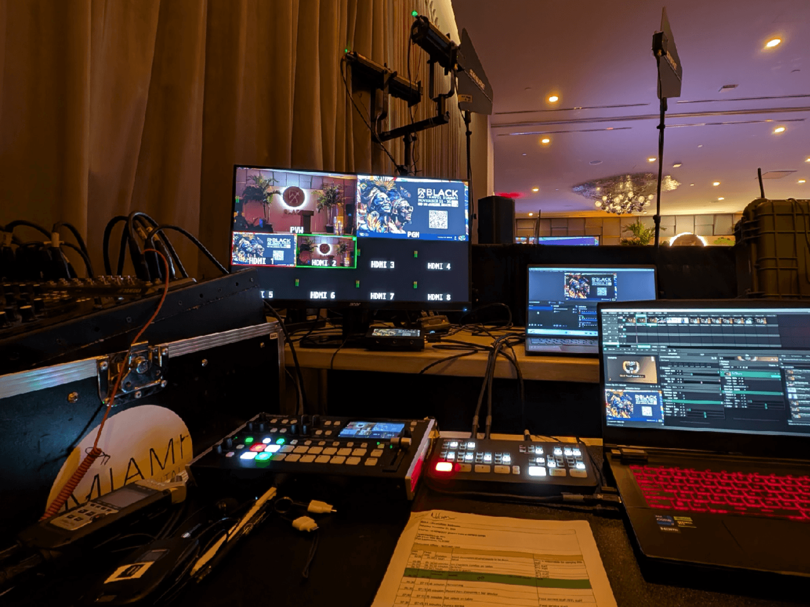 Get ready to taste the juicy details of our vibrant audio visual endeavor at the esteemed Black Travel Summit held at the Hyatt Centric Las Olas. It was an electrifying journey of multiple days overflowing with high-tech solutions and passionate exchanges. Striking visuals, crystal-clear projectors, dynamic TV monitors, finely-tuned sound and top-notch microphones, oh, let's not forget the seamless live streaming widely appreciated by the attendees. We basked in the pleasure of acting as the technical wizards behind the scenes, orchestrating the AV landscape!