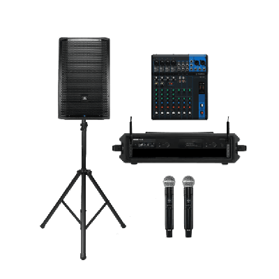 Get your party started with our microphone and speaker bundle, a perfect combination of sound essentials for any event. With the robust JBL PRX 815 speaker, crystal-clear SM58 microphones, and versatile Yamaha mixer, you'll be ready to rock in no time. Technical specs include a 10-channel Yamaha MG 10 XU analogue mixer, SM58 microphone, JBL PRX 815 15-inch powered speaker.